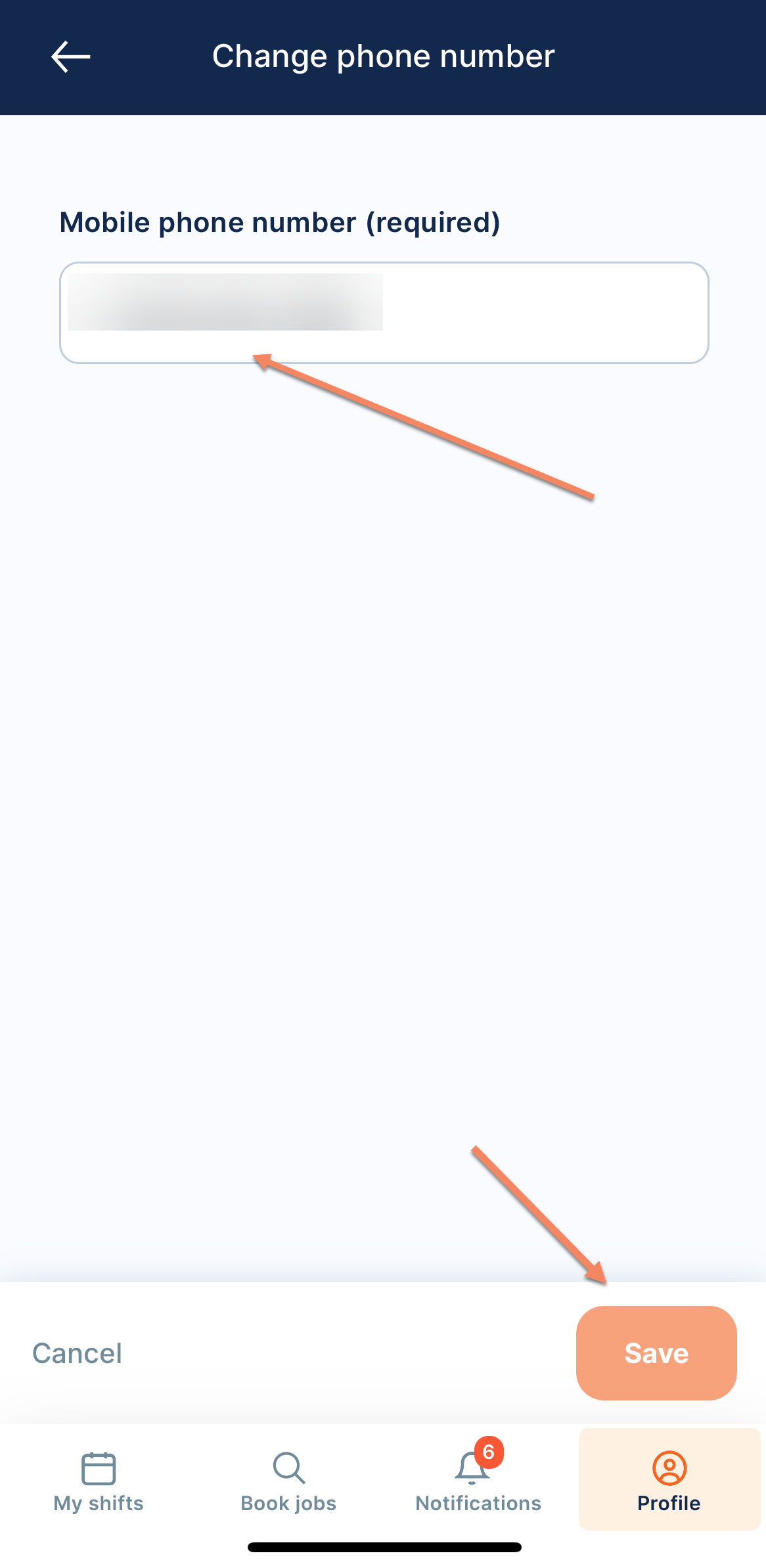 - In the Mobile phone number field, update this to your new mobile number and click the “Save” button at the bottom.